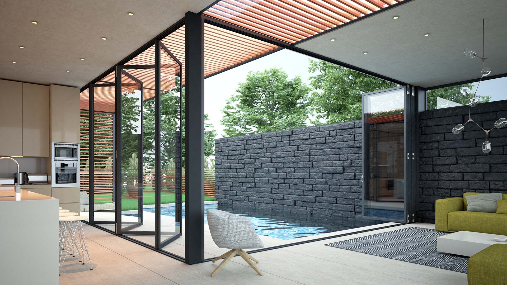 Optimizirani Schüco ASS 70 FD harmo-sistem nudi dodatne mogućnosti dizajna, zahvaljujući uglu otvaranja od 90° i sa ravni, toplinski izolovnim pragom. Širok spektar boja: moguća je varijanta različite boje u enterijeru i eksterijeru.